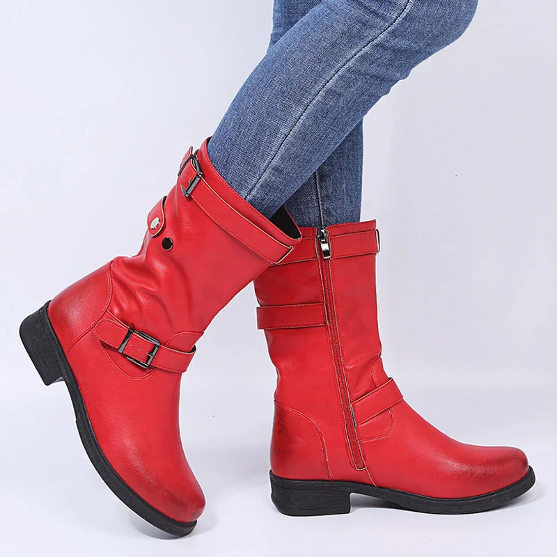 Women Orthopedic Boots Mid-Calf Buckle